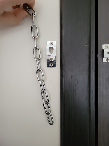 The chain lock for the door was broken as well and was not usable.