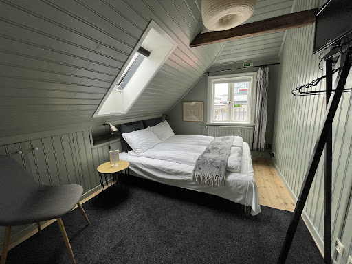 Read moreThis B&B was charming, fun, warm, and everything we could have hoped for in a location in Reykjavik. ||Located close by Bus Stop #1 (City Hall), it made for a very quick walk with our luggage when we arrived from the airport - and as a meeting point for pickup for the various tours which we'd arranged (Blue Lagoon and South Coast Tour). ||The check-in instructions were detailed and helpful and we had no issues with the outside lock or in locating our room. ||We had a top floor room, which provided skylights and other windows which we (unexpectedly and delightedly) used to view the northern lights on our first night there! What a wonderful surprise!! The slanty roofline and beams made for a charming room. As we're both taller, we did need to take care sitting up in bed and backing up from the mirror in the bathroom, but those are good memories to bring home. ||Learning that this B&B is one of the oldest buildings/homes in Reykjavik was an added bonus. ||We were only able to enjoy the breakfast on our last day there - as our tours on the other days left too early. However, that breakfast was delightful - the food was tasty (the skyr I enjoyed was wonderful and the bread my husband tasted was some of the best he's ever had). We really liked the opportunity to sit at the table with fellow travelers and share stories. ||Helpful hints: |Very close to Bus Stop #1 for booking of tours and airport transport. ||Also very close to a number of incredible restaurants (all of which were recommended by our hostess). Most locations (excepting items like the Perlan museum) are within walking distance. ||Being so close to everything, the location has the potential for noise, so you might consider bringing earplugs - but we never used ours. ||Make sure you look up at night - the northern lights may appear as grey clouds in the night sky; use your phone to take a photo and you might be surprised at the blue/green colors...