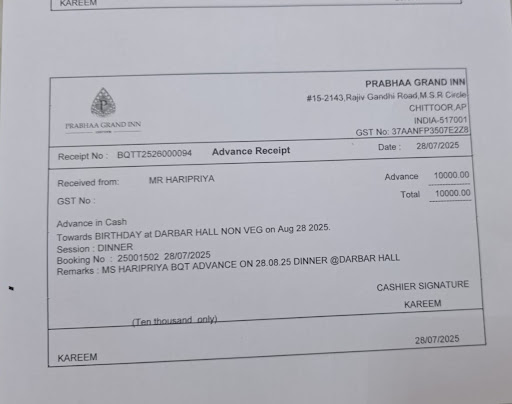If I had an option I would give ZERO to this hotel and management....such a worst service.....we booked party hall 1 month prior to our function with details clearly mentioned in the bill 1st floor Darbar hall which is a hall capacity of 150 people and we were expecting 200 members for evening dinner. The so called manager by name RAM was the one in touch with us from day 1 one fine day 2weeks before our event called us saying it's raining heavily in chittoor see if you can move your event to afternoon.we said we don't have any issue with rain we have all members from chittoor who can attend party for sure. He kept quite at that point of time....right before 2 days of our event they again started calling us saying we have made a mistake there's another party same day of 400-500 people they'll take 1st floor and tried convincing us to take 4th and 5th floor where hardly 50 people will also not fit in....we were always on our stand that we booked hall 1 month in advance and we will not take 4th floor as we already shared invites to guests also.inspite of telling them many a times they kept bothering us to change and troubled us alot till one day night before the event and the MD infact threatened us to cancel our function....such a cheap business strategies they played with us thinking that we don't have an option in the last except for accepting to take 4th floor as they said...so if any want their function to be canceled by them only then opt for this hotel party hall....they couldn't accommodate 150 people for a birthday party properly I don't understand how come they can handle 400-500 people in that hall...such an idiotic management misbehaving with customers after paying money well in advance..They'll go to any extent to compromise us instead of giving what they committed to customer.Just because of their behavior we had to cancel the partyhall one day before our event and look for another as they were forcing us to take smaller hall and threatening us....I don't know whoever is that MD you better don't play such cheap business tricks and play with your customer events.....you have no right to cancel our event it's we who paid money so we cancelled since you guys are WORST in managing services.....who reputation has already gone as we informed all our guests why we had changed venue in the last moment amd most of them were professionals out of them...stick to your words without making customer suffer for...