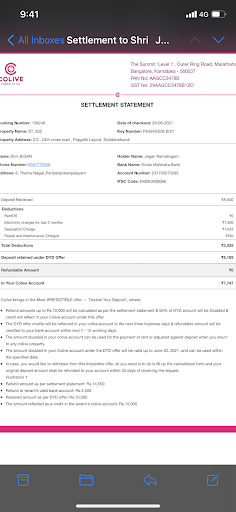 So in total, it will take around 3.5 months after vacating the accommodation until I could actually deposit the refund check. And even then, I have lingering doubts about whether the check will bounce due to Colive's malpractices and tendency to cheat people. Throughout this period, getting any updates from Colive was like pulling teeth - their call support was ineffective and emails went unanswered after the first reply. For a refund of my own money, I should not have to go through such a lack of transparency and runaround after ending my stay.