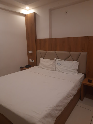 Pros: The location is easily accessible and not at all congested. There is easy access to public transport, super markets, restaurants, petrol pumps, hospitals etc. The staff at reception and cleaning were polite and well behaved. There was free basement parking which can accomodate a couple of cars, (says 3) plus a few bikes (say 8) at the same time. There is a small parking space right in front of the hotel which can accommodate 3-4 bikes which is very good as well. The room doors uses wifi card access and auto locks on closure which gives you a more secure feeling. The room was exactly as shown in the pics except for the obvious contrasty appearance and the bedspread designs. The room and washroom was super clean and spotless when we arrived. The wifi was strong and fast and had minor disconnections only occasionally for a couple of mins. There was smart TV in the room which was another plus. There was an electric kettle in the room and a common iron box and drinking water cans on each floor which was super convenient. The hallways were always kept super clean and it smelled really nice and they would clean the room at your request anytime and take out the trash regularly. They will allow slightly early check-in as long as there are rooms available. Make sure to call and confirm on the same beforehand. They had provided hand wash and body wash in the washroom which was a good gesture, but they were of the cheapest kind so don't expect much of it. The washroom had hot water 24x7 on tap and shower which is always great for the bangalore climate. There was power backup so whenever a powercut happened it was back up in a couple of seconds.