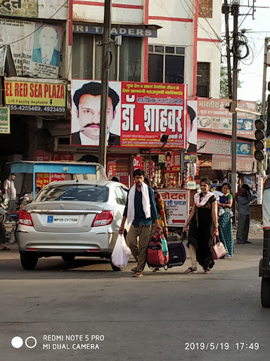 It's a easily identifiable land mark on the way to platform no. 6 of bhopal railway station. It is situated on the turn when we are going from hamidia road to bhopal talkies and vise versa. From this point there is a turn for platform no. 6 too. This area was previously densly populated and unorganized but in recent years this area has been developed so far. You can get bus to almost every location of bhopal from this point. Since this place is near to railway station so the food shops and hotels are available in this location. Red sea plaza is itself is home for Hotel, restaurants, other shops and bussiness spaces and last but not the least the great Dr. HASHMI.. LOL...... RED sea plaza is around 1km from exit...