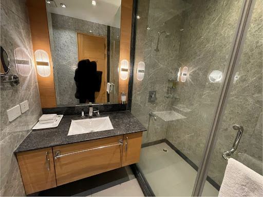 #room/Amenities : 4.5/5 The room was in excellent condition, though there can be better maintenance. One of the large mirror in the room was stained and one of the LED light was broken. All in all, it’s a big room with high ceiling, great lighting, beautiful bathroom and nice toiletries.