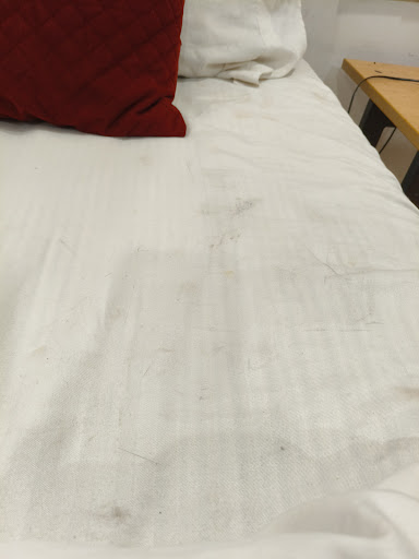 The room was completely smelly and dirty. There was dust dirt and fungus on the blankets, floor & wall area.