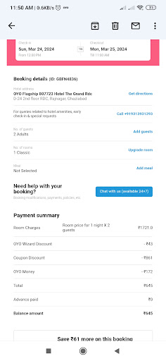 Frustrated and desperate for a solution, I again reached out to OYO's customer support for assistance. However, their response only added to my frustration level. They instructed me to hand over the phone to the hotel management, but when I tried to do so, the staff at the hotel refused to speak to them. It was as if they were operating outside any semblance of accountability.