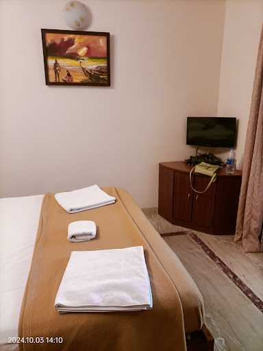 She mentioned each and every facility as if doing a favour like sawer in bath room, solar gyser, TV....Check in time was 12:00. She gave us room at 11:30 AM as there were vacent rooms available.That too she mentioned to us that she gave us early.Check out time was 11 AM. she came to remind us at 10:30 AM to check out.