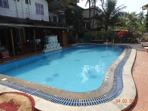 I was travelling to Goa solo and had recently moved from Anjuna as it was a much older hippy crowd there, so I came to Baga for a younger crowd and chose Indian Kitchen for it's pool. What a great decision!||||This family-run place has a variety of rooms. I chose the wooden Scandinavian hut (there are two) overlooking the pool. They are beautiful. They come with a double bed, private bathroom, satellite TV and a fan. Air con is extra, but after one night I found that the fan was enough.||||The minute I arrived I jumped in the pool where I met people from all over the world staying there - many of them come back to Indian Kitchen each year for their annual holiday.||||The owners and staff were outstanding and only too willing to help. I asked where to go for lunch and one of their staff, Sumit not only recommended a restaurant, but he drove me there too! He was a perfect host and definitely added to the overall experience.||||Sure, every now and then the Internet and satellite TV was down, but this is the same all over Goa. The only other annoyance was the church bells ringing every morning as the church is right next door, however Goa is beautiful at sunrise, so it didn't bother me much at all.||||I had a late flight when I was leaving, so I rented a cheap room for my final day at Indian Kitchen, which was very decent too, I just enjoyed spoiling myself in the hut by the pool.||||The location is great - walking distance to the beach, restaurants, shops, markets, etc... I recommend walking to the beach to the Love Shack which is owned by Indian Kitchen for some fabulous cocktails on the beach. I loved sipping a cocktail in a hammock at sunset while being offered pedicures and massages (they bring their own equipment, so you don't even leave the Love Shack) while watching the cows rest on the sand.||||Indian Kitchen and it's staff made my holiday, and I can say without a doubt that I...