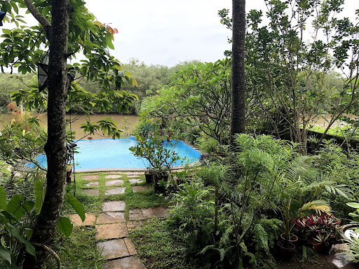 I'm really tired after a crazy, chaotic and long day of running around across my hometown in the peak of summers and the day isn't over yet..! As I settle down with a cup of coffee to calm my nerves a bit and close my eyes, the only place my mind immediately wanders to is Poorna Birdsong! Its been almost an year that I visited the place with my sisters (a total group of five), but everytime I need a mental escape, Poorna Birdsong is where I find myself in! Hence, the really late, but not to be missed review!||||Who is it for?||||For anyone who does not like conformity. Who likes wild, unhindered, unabashed beauty and finds joy in the absence of the urbane, too polished, too correct way of life in general - not just on a vacation. So Poorna was this beautiful old Portugese style Villa with beauty randomly strewn all over the place. The beds and bathrooms were nice, clean and comfortable, so you don't miss out on the basics. The breakfast was delicious and anything we asked for was made available to us with wake hospitality - which we enjoyed on the beautiful patio overlooking the pool and the river Nerul flowing right behind the villa. ( other meals are available on order from a nearby restaurant). Coming to the pool and the river. There is an infinity pool (yes please) in the backyard covered with trees and foilage and small outdoor bohemian decoratives of all sorts that peeps right into the river Nerul, which again in covered with trees in both sides giving you full proximity with mum nature (and yourself ) and the best (disconnecting) time of your life..! If you find beauty and comfort in old books and their nostalgic smells and feel (and similar stuff), the Poorna Birdsong is for you. Think tall old Banyan trees with their roots growing over the stone statues kept next to them, think stone sinks in the bathroom and the mysterious fragrance of after rains (petrichor is it called?) Mixed with that of flowers and leaves...think water dripping from leaves forming a small puddle and think yourself just calming down..! Are you in love with the place yet? If yes then you must go stay there. And the better it is if you go in the monsoons..Goa + Monsoons make a more terrific combination than you will ever imagine. Having said all this, let me also give a fair warning though. In my mostly happy with the place group too we did have someone who wasn't having the same feelings. If you would rather be at a place that gives you a formal, hotel like feel, then Poorna is not for you. However if the above outpour of my love for the place synced with you, then you...