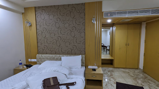 This hotel is located in the main city with plenty of options to eat around and shop as well. the hotel does NOT have car parking and a restaraunt , as it needs to be parked on the road. try out dakshin kannur veg restarant for tasty and affordable meals. which is 5min walking from the hotel. the deluxe category rooms are spacious and very well kept, only thing is the light in the bathroom is too dim. they dont provide a kettle for hot water. the flypside of this place is Mr. Roshan who handles the reception. You ask him to assist you with luggage , parking or any other service over the phone its never taken well, you are either stuck with the situation or you need to come up with an easy way out.(infact an elderly gentlemen helped me with parking and resto assistance even if you ask for a bucket and mug or gor the bellboy it will take ages to come. even if the rooms are dirty upon arrival and a quick change in room is a must, he will wait patiently at the reception(does not answer the call) until you visit him at the reception and sternly ask him WHY IS IT TAKING SO LONG!!! My overall stay was fabulous at the hotel, its only Roshan that messed up with your hotel star rating. He seriously needs coaching on Customer service. my...