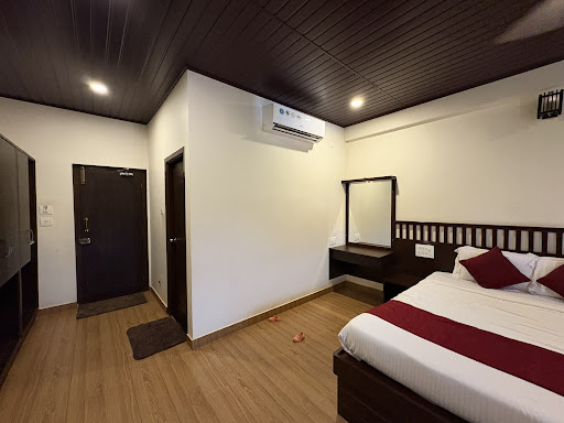 Read moreWe stayed here for a day during our Mookambika temple visit end of May. Though little far from the temple unlike other hotels (~5 kms), this resort is located in a calm & peaceful area. Currently it’s a small resort with about 20 rooms or so but they are expanding bigger & better. Rooms are spacious, king bed is good for 2 adults & 1 kid (or 2 small kids), air conditioning performed well, large balcony with seating. But hot water availability in bathroom is tricky (common water heater located elsewhere and you have to waste lot of water plus you may not get enough hot water when all guests use simultaneously, hope they find a fix to this). Also the roof is laid with tin sheets and when it rains heavily, you barely can hear the other person talking. TV is of no use as very limited DTH channels and it’s not digital to play Youtube or OTTs. Wifi is available but signal strength in rooms are very weak. Our Airtel mobiles were on zero network, so be prepared for it. A swimming pool available but it has uniform depth (5 ft) & no kids pool which means bit risky for short people. Dining area available but no in house kitchen (except for hot/cold beverages). Room boys behaved well & service is quick. Reception staff and resort manager is very jovial & helpful. No resort activities available unlike others. Ample parking space. Don’t follow Google maps after you enter the narrow road to this resort especially when it asks for you to take a right downward turn instead look for directions put by resort on the way (bad mapping/tagging). Wishing you a...
