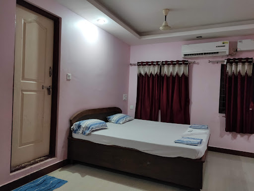 This place is very near to the temple like 200mts. They have charged Rs1500/- per day for 4 people, one decent AC room. Always do advance booking by calling over phone before reaching the property. They will just book by your name and mobile number. best part is they will allow 24hrs check-in service. Try to get a room, which is having a balcony. So that you can dry your clothes in the balcony. in our case we have got a room which is not having balcony, where we have to go to upstairs to dry the clothes. This place has ample amount of car parking space. There is no inhouse kitchen/restaurant. So you have to go out to have any food. But, there will be one person who rings the door bell at regular intervals for coffee(not free..lol). They provide soaps but not towels. So one has to carry towels. if you are planning to stay here. we have stayed here for two days and cleaning people came on demand after completing one day of stay. There will be Vishnu Vaibhava hotel, where you get decent food items available. They provide food without Onion and garlic items as well.(To those who are attending...