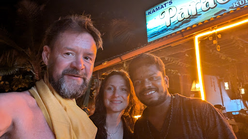 Read moreLove this small restaurant on Kudle beach. We stayed right next door at Shantika Uma Cottage so this was our regular place to eat for breakfast, lunch and dinner. The food was very tasty and they have the only Tandoor oven on the beach (see video!). Tri was the manager/son and looked after us every time we were in. It had a nice local vibe, and they were showing the cricket on a big projector screen so it was a popular place! Especially with the start of the T20 season. We usually sat down the front near the beach, it was lovely to be so close to the sand. The omlettes for breakfast were really good, and we had several Indian staple dishes whilst there. Tandoor prawns, tandoor chicken, paneer masala etc. All very tasty. Thanks again Tri. Hope to be...