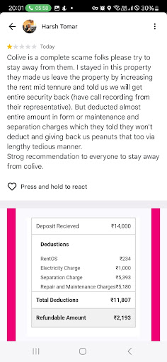 Think carefully before opting for Colive, as the hidden charges and lack of transparency can be...