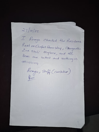 Ā Ā Ā Read moreRent on comfort Mysore We had an unpleasant experience while staying at this place.The Superhost Soumya was very rude and not at all helpful.The kitchen utensils were all broken and unusable.All bedrooms were untidy and filled with junk items on top of the cupboards and inside. Since the maid had access to the house we had to buy locks and lock all bedrooms for safety.Having known that we had locked the rooms the maid switched off the power. When we returned in the night there was no power there by all the food and milk that we kept in the fridge got spoiled. Due to all these experiences we asked for refund and vacated the house abruptly. We have been informed that there is a washing machine available in the building for common access for the guest to use.But later we found that we were not able to access but the super host told us that all washing should be left in the bucket for the maid to do the washing which we did not like. Edit I knew the host would lie hence attaching the ups picture which is intact and also attaching the note undersigned by the staff that when we left we made sure everything is intact and kept well. Also i have proofs that i was on call with Airbnb to cancel the last day and get a full refund as we were fed up of...