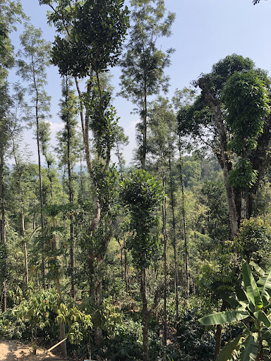 The climate at Coorg was cool and pleasant during our visit. The route to Royal Woods from the Mysore-Madikeri main road was adventurous and scenic, though bumpy. Mr. Antony in his Maruti omni guided us from Cariappa circle. When we reached Royal Woods, it was drizzling and cool. Just beside the resort, there is a slope with coffee plants and trees. The views downhill from the resort were great though we did not get a chance to go down the hill. The resort's location is far from the hustle bustle of the main city, so the environment was very calm and clean. Since the resort is part of a coffee estate, it was misty and green outside especially in early mornings. We had an early morning walk one day from the estate along the mud road and the walk was refreshing.