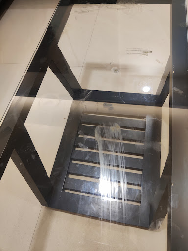 Additionally, handrails were present but could not be used because plant pots were placed nearby and far from the door entrance, leaving people with no support while using the stairs. There was also AC water on the floor, making the area even more slippery. Keeping carpets on the stairs further increased the risk.