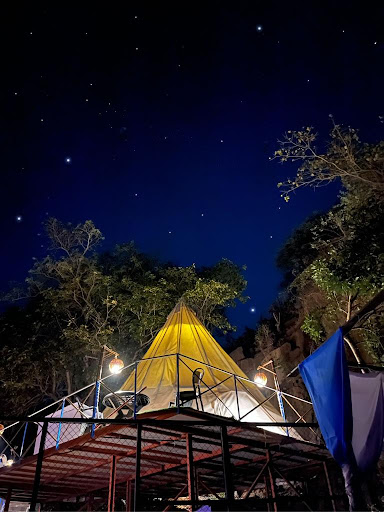 This is one of the best resorts/campouts in the area. We initially had bookings to another place, but at the last moment there was a change of plan and we ended up at Blue Bella. It was a pleasant experience and the hosts were too good. We rented out a TIPI which is not your typical tent, but an elaborate spread which gives you a rustic feel along with the amenities one wants. Besides, it can accommodate 5-10 people if required, ideal for groups. Checkin - 4 PM to 11 AM. I was initially skeptic about the 4 PM login, but it makes sense that during noon, the tent tends to warm up.