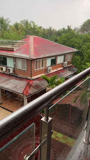We stayed here in May 2025 for one night on our way to Goa. We had booked three rooms for six people—one on the first floor and two on the third. There is no lift, so you’ll need to climb the slippery stairs carefully, especially during the rains. The hotel is set in a beautiful location, although it’s in interiors and bit difficult to find using maps. The structure itself has a charming, rustic feel. When we checked in, it started raining heavily, which made the surroundings look even more scenic. Check the video for the awesome view around the hotel. Full marks for the ambiance. As we entered, there were 2–3 dogs lounging in the lobby. Not a pleasant site to see. The biggest disappointment came when we saw our rooms—big size rooms but they had not been cleaned at all after the previous guests left. There were food stains on the tables, unmade beds, empty liquor bottles, and litter scattered around. Seriously? If you know guests are arriving, not cleaning the rooms is extremely unprofessional. That was the first red flag. One of the bathrooms had a leaking roof due to the rain, which made it all wet and slippery, the bathtub was in a terrible condition. The AC in another room wasn’t working, and to top it off, the power kept going on and off. It was incredibly frustrating to constantly call the staff to fix these issues. The cellular network was very poor and didn’t work. The food was another letdown. There is no in-house restaurant. We ordered a simple khichdi, which was also brought in from an outside restaurant. For dinner, they promised chicken thali and solkadhi but later told us the solkadhi wasn’t available. Nothing was freshly prepared onsite. There was another group of guests who went into the restaurant kitchen to cook their own meals—something we were never informed about. There was no proper restaurant staff or cook available.
