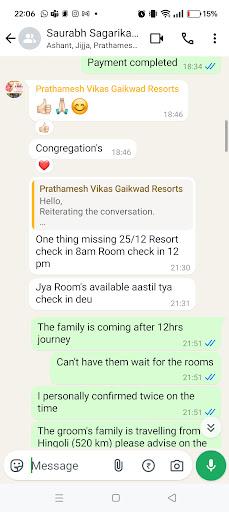 Had Booked this place for my Wedding on 26th December 2024 and this is my biggest regret off the entire wedding and specially because of the Management and Manager attending us. Before booking the place, we had confirmed twice on the check in and check out requirements.. they were charging us bomb (2700 per person for night stay +600 for next entire day so 3300/person without food including same rate for vendors), not as per the room and they have multiple people accomodation in each room considering 3300/pp for 7am to 11pm next day, we proceeded with the deal.) Very smartly he did not say anything until his lead was closed and we made the booking payment. Post booking, manager put a disclaimer that rooms will be available for check in at 8am basis of availability. When we called to confront and cancel, he convinced us that the total capacity of the rooms is 300+ and our requirement is of 130 so should not be issue, also he will ensure to allocate the rooms apart from what we had already discussed to occupy during visits considering reach out to all venues. We had also very well informed him that we do not have enough man power to run around so please ensure all is sorted in advance. We promised to provide him all the allocation by the 16th. On 15th while we were finalising all the allocation, we realised the rooms count were not in the series and missing rooms in each category.. we work night shifts and were working till 20th of December we still managed to visit the property which is 1.5hrs drive one way and got the correct room numbers and count ourselves on 21st. We had already got a glimpse of pathetic service by then as he had also stopped responding to any queries on the group. The wedding was on 26th and our check in on 25th when we had all the pre functions and the groom and family were to leave from their hometown (530km journey) on the 24th night. On 23rd we called him to see if any room was available to check in on 24th night (we were ready to pay) is when Mr Gaikwad, after we called tells us that most of the rooms we have sent on the sheet are already occupied. 24hr before the groom and family can start their overnight journey of 530kms, We had no rooms to accomodate them.. 23rd was My Mehndi and I had to delay my function and figure out a way to have everyone accomodated. We somehow managed interchanging the allocation from non available to available rooms as per the sheet provided and make calls to few guests and have them come late so we can have rooms available for check in. We finally arrived on the venue took a handover of they keys and started allocating the rooms as per list made thinking finnally we are sorted and I can now enjoy my wedding!but little did I know this was just the begining. As the guest started opening the rooms, the bed numbers in room did not match the capacity on the allocation sheet. Eig room number 102 shows a capacity of 4 members on sheet so we allocated 4 member to stay but the number of beds in the room were only 2. The groom was busy in pooja and I despite of being the bride had to runaround in tears and pressure to accomodate guests as they stand outside their rooms wondering how do they adjust! It took me 2hrs while the staff kept looking at me as they did not know why the manager did not inform us of changes in beds they have made since the sheet was last updated. We finally managed to adjust to the rooms. Few rooms that were occupied by other guests and were to be handed over by 11 as per promised were also not handed over until 12 to 2pm. Post rooms, the message up began with the quality when flush for most rooms were not operational, leakage of ac water in multiple rooms that screwed bags and clothes including water clogging in my own room that also spoiled my one event attire.. the phones were not working in even single room for us to...