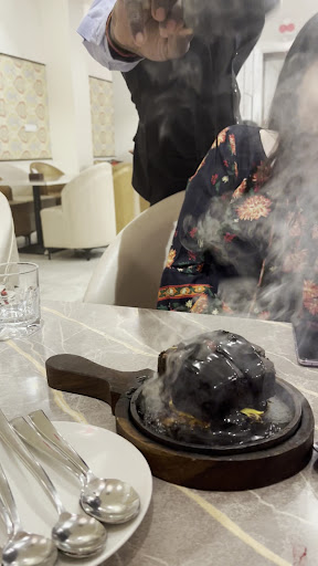 Sizzler starter came on table sizzled for 2-4 mins made all its glorious presentation after that the plates came then it took around 3-5 mins for the spoon n forks... lovely service