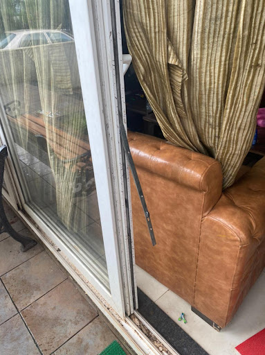 The back door of the kitchen is totally uprooted and is fixed with 2-3 temporary wood log support .. just one jerk and the house is open from the back side too....!!