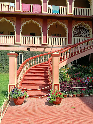 The guest house is ten minutes walk from the temple, clean and beautiful. Lovely gardens with prettiest of flowers around. For meals, you can get coupons, simple food served while you have to sit on the ground. Many shops around the guest house, selling prasad to bag to skirts to agarbattis make the place all the more interesting. Location wise, I think this guest house is best.