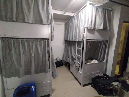 Coming to the room, the 6 bedded female dorm has an ensuite bathroom which is comparable to a decent hotel bathroom, and there is a lot of cleaning done to make sure it stays clean. The beds were super comfortable and clean, with privacy curtains as well. The AC was switched on in the evenings for the entire night, which kept the room comfortable. It did feel claustrophobic sometimes due to the lack of windows, but stepping out into any of the common areas (since anyway food is not allowed inside the dorms) helped with such instances.