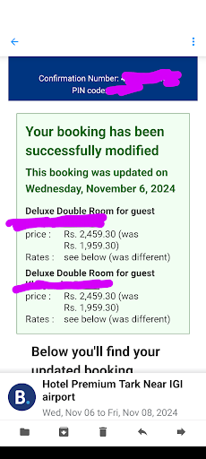 Read moreI booked hotel 'Premiun Tark' but landed on this ' The Tark' hotel' based on the address given by hotel staff over the phone. This hotel is a SCAM and I am writing to aware people and avoid falling in trap same way like me. My confirmation of online booking said no extra costs to pay at hotel and confirmed on availability of deluxe rooms, but hotel staff said these rooms were not available, modified my booking instantly and asked me to pay extra 1500 IRS including taxes/GST after my arrival as seen in the photo. I had to pay and was forced to accept because it was 10.30pm at night and I had wife and kids. The rooms were far different than what was in the picture of my CONFIRMED booking, as it was a different hotel of the same group. The rooms were very dirty, had cigarettes butts on the table, astray on bed, bed sheets with stains of food, toilet had cigarettes, taps not working, no towels at all, and didn't provided one even after multiple calls, hallway was like a dusty road.On top of all this, there was no water in the 2nd day of my stay and we were asked to use another rooms bathroom in another floor. It was inconvenient for my family of 6 to go to the next floor with stuffs to use the bathroom and shower. PLEASE AVOID THIS SCAM.