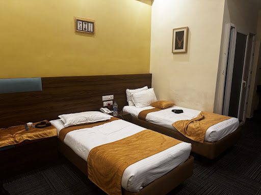 Hotel Room is having little space to move. clean toilets. Having necessary toiletries. But they have some minus points like you get one chai in double sharing beds. Toilet flush position is really bad. You can not open toilet seat fully due to flush point. You need to ask for dustbin.