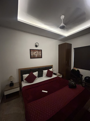 Spacious and tastefully furnished, the rooms boast elegant interiors with a modern touch. From the neatly arranged bed and high-quality furnishings to the well-lit ambiance and meticulously maintained decor, every corner speaks of refinement and care. The subtle color palette and sleek storage units enhance the roomâs luxurious appeal while maintaining a sense of calm and coziness.