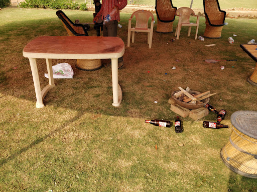 Next morning finds the common lawns littered with beer and alcohol bottles, dirty tables and chairs, and nobody to clean it up till 10am. The photos you see posted are from 10am next morning.