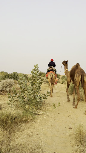 -- Exactly how I wanted. Little out from the road and rush. Peaceful place. Very near to sand dune. I went there walking with camp staff ( very humble ) for sunrise. -- Safe -- At night it went dark and the camp was shining with bright light. If you go little out from the camp, stars were clearly visible -- Jeep took around 10 minutes to reach to the camel/jeep safari location -- I'll prefer to go to their sand dune, which is less crowded. They arrange camels to take you there. -- Sunrise can be seen from the camp as well.