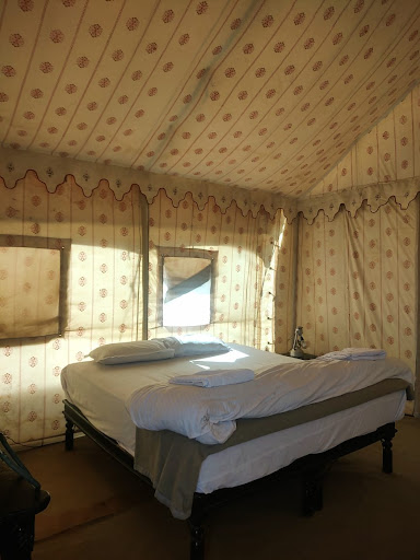 There is no name board for Seven Palms Desert Camp except the one on main road. There is no telephone / intercom in tent. You have to walk all the way to kitchen (they don't have office / reception area) in sand to find a hotel staff. The rooms are not great. No heater available in chilling cold. Hot water available only between 7 to 9 am which doesn't make sense where checkout is at 12 pm. Service was average. No complimentary water bottle provided until we reminded them twice. Food was ok nothing great.