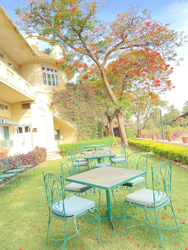 It offers huge open area around a natural lake and is wide spread to offer Co living for both humans and animals.. it has a professionally managed stud farm, goat farm , a private airport and plane hanger of the maharaja’s personal aircrafts , huge lake along with a limited but sufficient no of cozy rooms and suites.
