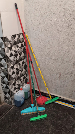 The room floor was wet and let it feels sticky.