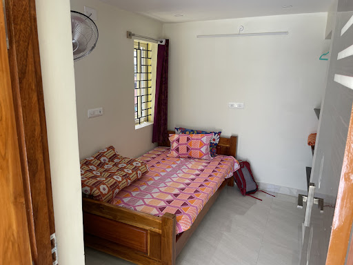 A family of three, we stayed at this place over the weekend. The staff were very courteous, kind and polite. The rooms were neat and clean and had all the necessary things such as a sofa, cot, pillows, blankets, etc. Drinking water was provided. The room even had a kitchen. My sister used the kettle for some hot water, though we didn't use the kitchen otherwise. My mother aged 79 accompanied us and the staff was kind enough to give us a room on the ground floor. The bathroom was spacious and very clean. Running water was available round the clock. Geyser was present and we could get hot water for a shower any time. Toothpaste, brushes and soaps were provided on the house. The place is very quiet and you can rest here well. All the windows and doors had mosquito meshes so there were no pest problems. Though not part of the package, the staff provided us with some free coffee early at 5 am. A bit difficult to spot this place, given that you have to go through narrow gullies, but if you manage to do it the first time, you won't have any trouble the next time around. Parking is on the streets. No TV, but that only allowed us to remain silent. The whole purpose behind our trip to Tiruvannamalai. About a kilometre or so from Ramana Ashram. Any day, I would love to...
