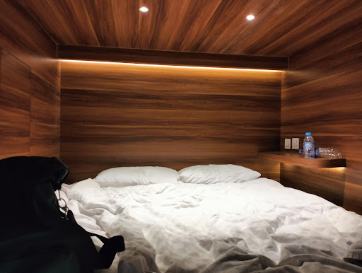Kita bahas roomnya. Walaupun namanya "capsule one bed", ruangannya ternyata ga sekecil itu kok, bisa dibilang cukup lega dan bisa gerak dengan agak leluasa. Tp kalo kamu petakilan ya pasti mikirnya bakal sempit, tp ya mikirlah wkwkw Walaupun kita dempet sama capsule yg lain (karena literally dalem satu ruangan itu ada banyak capsule) tp ga berisik sama sekali, bahkan cenderung senyap. Lagi untung kali ye dapet pengunjung yg ngerti privasi, jd bisa lebih enjoy experience nginepnya.