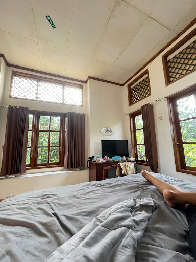 karena room yg saya tempati deluxe jd cocok untuk stay bareng keluarga kecil, bed king size muat parent+1kid aja.. Oke, bersih, luas dan wangi, furniture dlm room pun bagus, classy.. fasilitas kulkas, microwave, dispenser, lengkap dengan cutleries yg tersedia di luar kamar, mungkin untuk digunakan bersama, tp saya pribadi blm sempat gunakan.. tadinya hawatir nanti gk bisa mandi air hangat krn digaleri photo app, tampilan kamar mandi gk ada water heaternya tp ternyata ada, alhamdulillah bisa mandi air hangat. Lokasi guest house di dlm komplek, jd sunyi sepi sendiri.. untuk harga agak sedikit tinggi krn booking dihari yg sama dan mendekati tahun baru, saya maklum krn memang high season.. tp overall,...