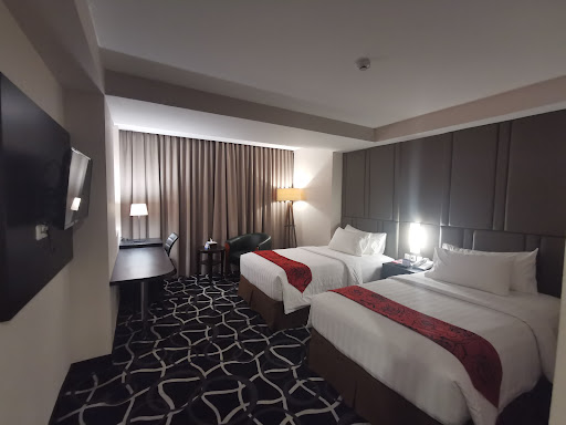 Stayed in room 312 15-17apr 2023. Good size room for family of 4 (2 kids under 12), quiet, bright, clean, comfy. No view outside the window but we didn't mind because we were outside all day anyway. Clean bathroom, the sink needs work though. And the room carpet needs to be vacuumed more :). Our room has no fridge. AC and hot water work perfectly. Food is ok. Friendly and helpful staff from security to front office. Please prepare 200k for room deposit. Parking space is ok, can fit 15-20 I think. Perfect location, only 500m walk to Jam Gadang, lots of F&B nearby. I recommend guests to visit Fort De Kock right in front of hotel. Cool weathered place, beautiful view of the city, well maintained, instagrammable photo spots, and kids will love their zoo. Walk passed the bridge and you can see elephants, birds, zebras, tiger, orangutan, and reptiles. Price for 2 adults and 2 kids are 90k on Mondays. Totally worth it! They also have family benteng restaurant upfront with the famous ayam pop cuisine. Fort's Parking lot can accommodate upto 10 cars. Will not hesitate to stay in this hotel again :) Keep up...