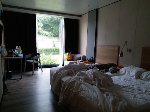 the place is stunningly spacious. its made from a complex of used container so every room got 1 big size container size 30m or 323 ft. the view from the big window glass gives a green calming vibrant that make your stay even more peacefull. the location is in a big complex of a new developing real estate so its quiet. far from the noisy street but its close to the toll/highway. some of the apartment facilities has not yet worked as it is planned, like there isnt any restaurant or cafe or 24 hourstore eventhough the room is set/available. but no worries because you can just find a 24hours (before covid19) nearby.only a walking distance just outside the complex gate around 600m. the staff are helpfull and swift. the room is clean , the bed is big and the linen is just as comfortable as home. most of all it gives me the new experience for staying in an exclusively comfortable and cozy...