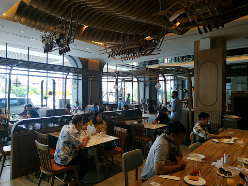 I really like the interior concept of the restaurant where on the ceiling there is artwork of a ship that can move, it's very fun, the health protocols in the restaurant are also well implemented. The taste of the food is pretty standard. The menus served include Fried Vermicelli, Fried Sambal, Baked Beans, Dori Colo-Colo Fish, Fried Chicken, Chicken Porridge, Croissant, Donuts, Cake, Sweet Porridge, Fruit and Salad, Danish, infused water, guava and orange juice, coffee and tea, omelette, sausages slices, pancakes and soup. I hope they can improve the taste and bigger...