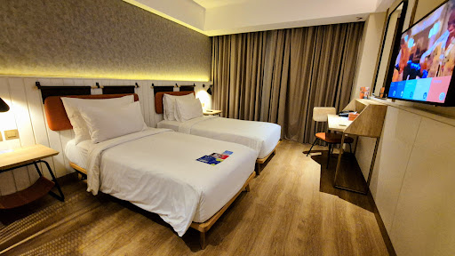The trendy and sporty impression is very visible in this hotel starting from the logo with orange lighting. The interior is a collaboration with depepedia, the concept is very good and in my opinion it is an overlook for a 3 star hotel, plus when I entered the lobby, the lobby was very fragrant, cold and comfortable. The interior of the lobby lift seems semi-classic but the interior of the corridor is sporty.