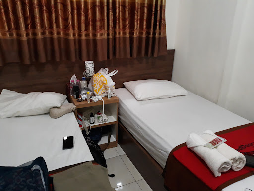There's no spacious parking lot for this place. You still can bring your vehicle, but the lot is so small and mostly full by motorcycle. My twin bed room is so small, and feel so crowd, but for me, the bed is so soft and comfortable. Yes, I repeat, the bed is so soft and comfortable. Yet the pillow is so thin like no pillow at all. There's some stain on bathroom wall, and mold on the ceiling. Cleanness need to be improved. AC's work perfectly and TV is using cable service, so yeah we can watch international channel too. Bathroom a bit small and since there's no ventilation/exhaust fan, it feel a bit damp and sometimes smells weird. To enjoy hot shower, you shall wait about 10 to 15 minutes under running water before it turns warm/hot. You get simple toiletries (tooth brush and paste; towels; shampoo) and two bottles of mineral water. Not enough electricity socket. Good Hospitality and cheap price booking via...