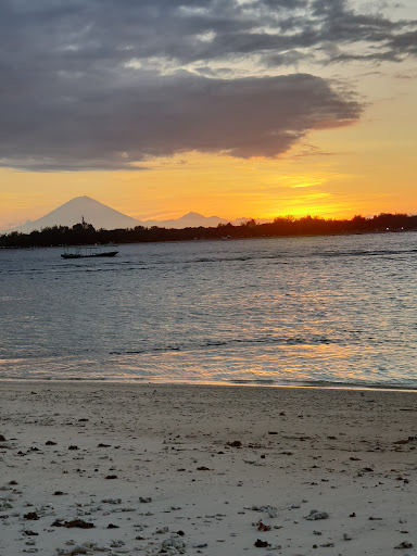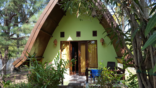 The bungalow is located on the west coast of Gili Meno island, quite far if reached from the harbor (which is on the east coast), but just a minute away from beautiful sunset. To go there from the harbor, you can rent a "cidomo" traditional transportation, the only transport in the island besides bicycle (price: 40,000rupiahs per person, 100,000 rupiahs for 3 persons for about ten minutes ride). We decided to walk from the harbor to the bungalow and it took us around 30 minutes through the center of the island and passed a beautiful lake!||||The owner, the staffs and the shop owner beside the bungalow are very friendly and helpful. They gave us free juice as we arrived tiredly after walking :D We stayed in an A/C room: the room and bathroom are spacious, clean and neat. We love the location since it is not among loud pubs and bars. It feels peaceful with all the plants and garden. The owner helped us to get bike rent and also allowed us to hang our laundry (in the evening they even put them back on our porch. how nice!).||||Breakfast is yummy. Simple toast and eggs with various fruits. The owner is a nice man to talk with. If you are looking for a lovely stay, this is one of the best...