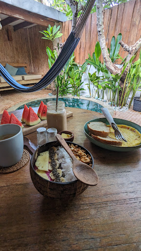 The location is alright. It’s fantastic being just around the corner from Jali Kitchen, the best restaurant on the island, and close to Jawa House. However, for some, it might feel a bit out of the way from the main areas. Walking is “doable” but not advisable bc it would take triple the time google maps says (pretty sure bc everyone bikes google thinks the biking time is the walking time); biking is easy to the main areas but comes with its own considerations, especially at night or if you’ve been drinking. And if you’re arriving with luggage, be prepared to take a horse cart.