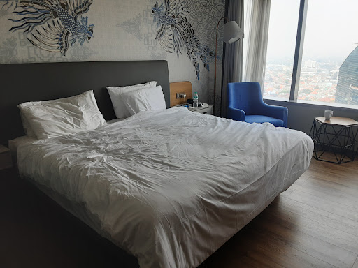The room is pretty good, spacious enough. Bed and pillows, super comfy. Can definitely hear the next room, loud and clear. The door is so heavy, it's pretty hard to open. Wifi connection is excellent. The window is pretty wide so we get a good view of the city. So good that at night we could really hear the city, woke up a few times even because of the sound. We're on the 29th floor by the way. The concept of the bathroom is good, amenities so so. Water pressure's not to be desired, so is the hot water. Sometimes the water is too hot, sometimes it's too cold. Is this some kind of water therapy, where you get cold-hot water treatment to soothe fatigue?