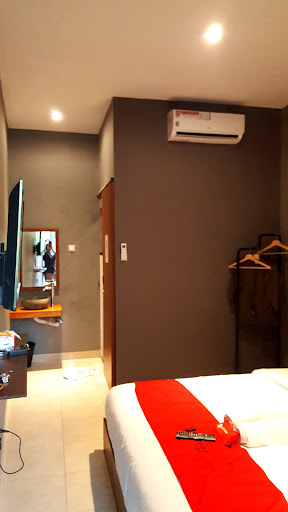 Read moreLokasinya ada di gang dan masuknya lumayan jauh dari jalan besar, tapi yang ke sini buat staycation memang pas banget sih. Kamarnya bersih, nyaman, fasilitas okelah. Apalagi saya menginap di lantai 1 dengan pemandangan kolam renang berasa lagi di Bali. Sayangnya pas saya nginap di sini, malam pertama saya lumayan terganggu dengan pengunjung lain yg cukup berisik, karena privasi antar kamar di sini kurang karena posisi teras yg berdekatan. Kemudian, di malam kedua, sekitar jam 7-9 malam lewat ada serombongan anak-anak remaja dan orang dewasa sekitar 7-10 orang yang berenang dan sangat berisik. Saya akhirnya ke resepsionis dan menanyakan apakah mereka tamu yang menginap? Resepsionis menjawab, "oh itu nggak nginap, nanti pulang kok, nanti pulang." Loh, berarti ada warga selain pengunjung hotel yang memakai fasilitas tersebut dong? Kalau nggak berisik mungkin saya masih ok lah, tapi ini sangat menganggu. Dan yang jadi pertanyaan saya, kenapa fasilitas di penginapan ini juga dipakai orang lain? Apa ada kebijakan lain kolam renangnya bisa buat umum atau bagaimana ya? Haha karena lucu aja. Kalau memang bisa buat umum mungkin bisa di notes di awal ya kepada calon pengunjung hotel. Di saat saya menulis ini pun jam 00.05 masih terdengar orang nyebur ke kolam dan ngobrol dengan suara kencang. Hadeuh, kayanya gak lagi-lagi nginap di sini. Kecuali kalau kamarnya sudah ada sound proof...