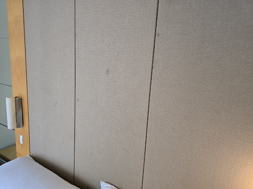 As shown in the photos, there was hair on the bed, carpet and sofa was stained and filthy, baby cockroaches were found in the toilet and kitchen, frail bath towels- no hand nor face towels, molds on the curtain and lamp shades, parts of the curtains were unhinged and incorrectly placed sockets and just generally dusty and unclean.