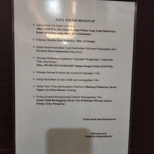 Read moreVilla yang saya kunjungi namanya villa sangkuriang, tempatnya deket sari ater. Rumahnya bersih, ada dua kamar tidur, 1 ruang tamu + TV yang menyediakan saluran netflix, karaoke, kursinya empuk sampe bisa dipake tidur kepala dan leher ga pegel. Ada 1 dapur dan 1 kamar mandi, cuman air di kamar mandinya dingin, gaada air panas, karena di dalam rumah ini sudah ada kolam air panas semi outdoor. Bisa pesan makanan juga, nanti diantar oleh pengelola. Dapurnya lengkap, ada magicom, kulkas, sampai peralatan dapur dari mulai panci sampai pisau dan talenan pun ada, ada ulekan juga bahkan. Free wifi, udah lengkap ada piring, mangkok, sendok, centong, juga udah ada segalon air di dispenser. Kekurangannya hanya di air panas di kamar mandinya aja yang gaada dan gantungan baju di kamar yg nggak ada.