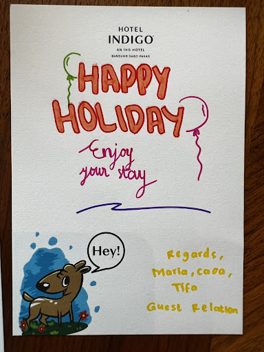 Read moreIf you're craving an escape that's both refreshing and visually inspiring, Hotel Indigo Bandung Dago Pakar hits the sweet spot.Tucked away in the cooler, greener side of Bandung—up in Dago Pakar—this hotel blends Sundanese heritage with modern aesthetics. From the lobby alone, I knew I was in for a treat. Wood carvings, vintage tiles, curated art pieces... it felt like walking into a living gallery.But the real magic? The view. Imagine waking up to pine-covered hills and misty mornings from your balcony. It’s a retreat above the clouds.🚗 Getting ThereFrom Bandung Train Station: 30 minutes by taxi or ride-hailing appFrom the city center: 20–25 minutesThe road winds uphill, so expect slightly cooler air the higher you go. You will feel the difference.🎯 Nearby Attractions & How to Get There:Tebing Keraton – 10 min driveFor a sunrise above the clouds. It’s a cliffside viewpoint with jaw-dropping scenery—bring a jacket and a camera. The road is narrow, better with small cars or scooters.Taman Hutan Raya (Tahura) – 7 min driveForest park with light hiking trails, Dutch & Japanese caves, and peaceful greenery. Great for families with kids or elders.Dago Dream Park – 15 min driveA family-friendly amusement park with Instagrammable spots and kid-friendly rides. You can rent an internal shuttle to explore.Lawangwangi Creative Space – 5 min driveArt gallery + café with a stunning sunset terrace. One of my go-to places for coffee and creative vibes.Cafe D’Pakar – 5 min driveOpen-air dining with epic views of the valley. Come early for a spot by the edge. It gets chilly in the evening—pack a sweater.🏨 Why I Loved the HotelInfinity pool facing the forest 🏞️Spacious rooms with local design touchesBathtub with mountain view (yes, really)Rooftop bar + locally inspired cuisinePeace and quiet — yet not far from the city✨ Final ThoughtsHotel Indigo Dago Pakar is more than just a place to stay—it's where nature, culture, and creativity collide. Whether you're on a romantic getaway, a creative workcation, or a family staycation, this place delivers...